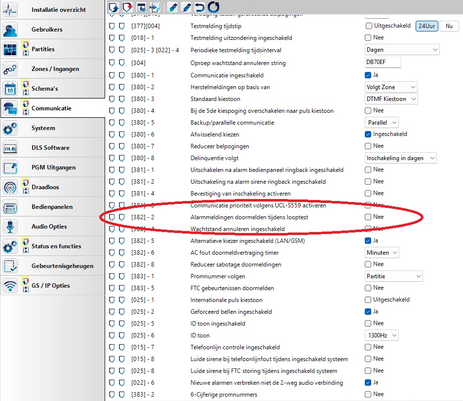 Alarmmeldingen doormelden tijdens looptest