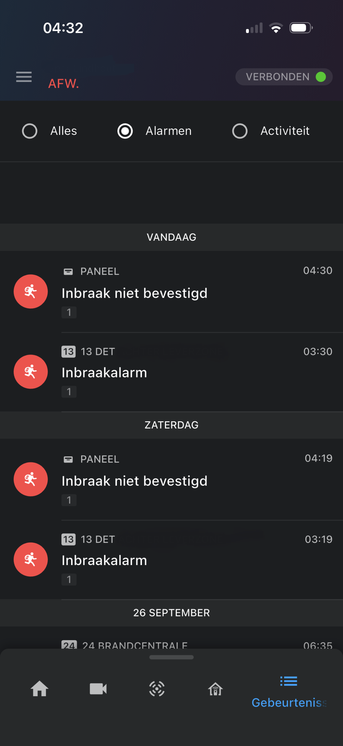 Deze zone staat op inbraak verificatie.