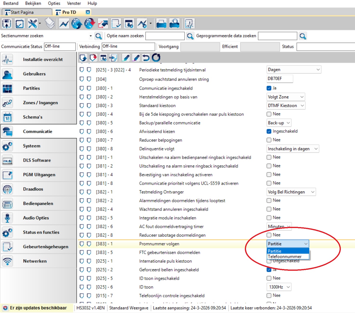 Ga naar communicatie en scrol door naar 383 – optie 1 (promnummer volgen), kies hier de optie telefoonnummer. Het systeem houdt nu rekening met de 6 cijfers.